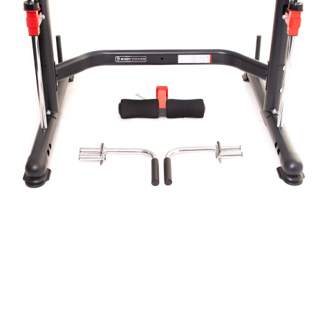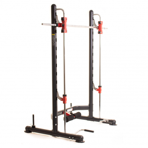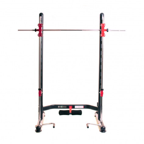 Great for any weightlifter that doesn’t have the space for a full sized smith machine, this Compact Smith Machine packs in features while importantly saving on space. It’s unique track roller with bearings allow for a smooth, silent and efficient workout, with eleven “hook-in” holes for quick and safe lockouts. The smith bar itself is chromed and knurled for a secure grip. Included safety catches can be moved up and down the chromed guide rod to suit your workout, so you can safely perform squats, presses and rows at home without the need for a spotter. Enlarged foot covers also offer more stability during heavy lifts, so you can fully focus on your training. Push up handles are also included, easily attaching to the base of the smith machine, plus foot-hold foam rollers that allow you to incorporate sit-ups into your routine. Weight horns are also built in to the frame for safe storage of your weight plates, keeping your workout area tidy and organised.