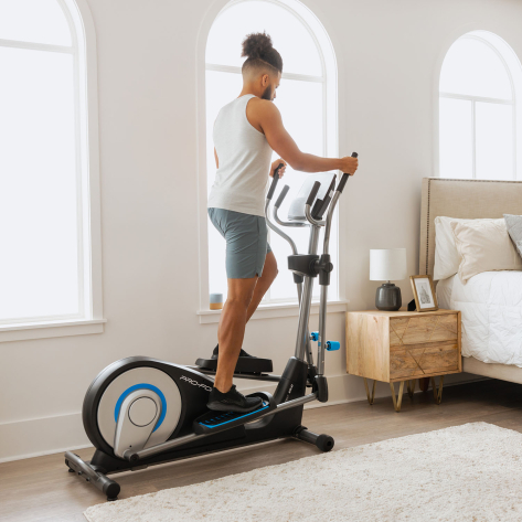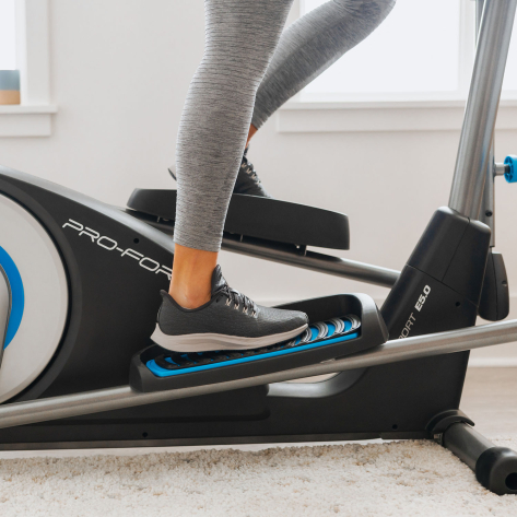The rear-driven ProForm Sport E5.0 Elliptical has a fixed 41cm stride length and an 8kg effective inertia-enhanced flywheel for a smooth ellipse. Set the challenge with 14 levels of SMR™ Silent Magnetic Resistance, easily adjustable mid-workout with Digital QuickResistance® controls. Soft touch upper body handles and oversized cushioned pedals ensure ideal positioning throughout your workouts. Download the iFIT app to your tablet or smart device, connect to the Sport E5.0, and you can enjoy a virtually unlimited selection of individualised workouts led by the world’s best trainers in the comfort of your own home. Access a new workout every day, automatically track your progress, enjoy real-life routes with Google Maps™, compete with your friends, custom-tailor your training to your specific goals and more (30-day iFIT Subscription Included*). With ActivePulse™ technology, you can connect a SmartBeat Arm Band (not included) and have your iFIT trainers adjust the resistance of the elliptical based on your heart rate, so you know you’re working at the right intensity and in the right heart rate zone. All of your important readings are easily monitored on the 5” high-contrast multi-colour display, with dual 2” speakers letting you play your favourite music out loud while you train. Other integrated features include a water bottle holder, tablet holder, and transport wheels for easy movement. *30-Day iFIT Trial Included. Credit Card required for activation. iFIT Membership auto-renews unless cancelled in advance. 30-day trial applies to new memberships only.